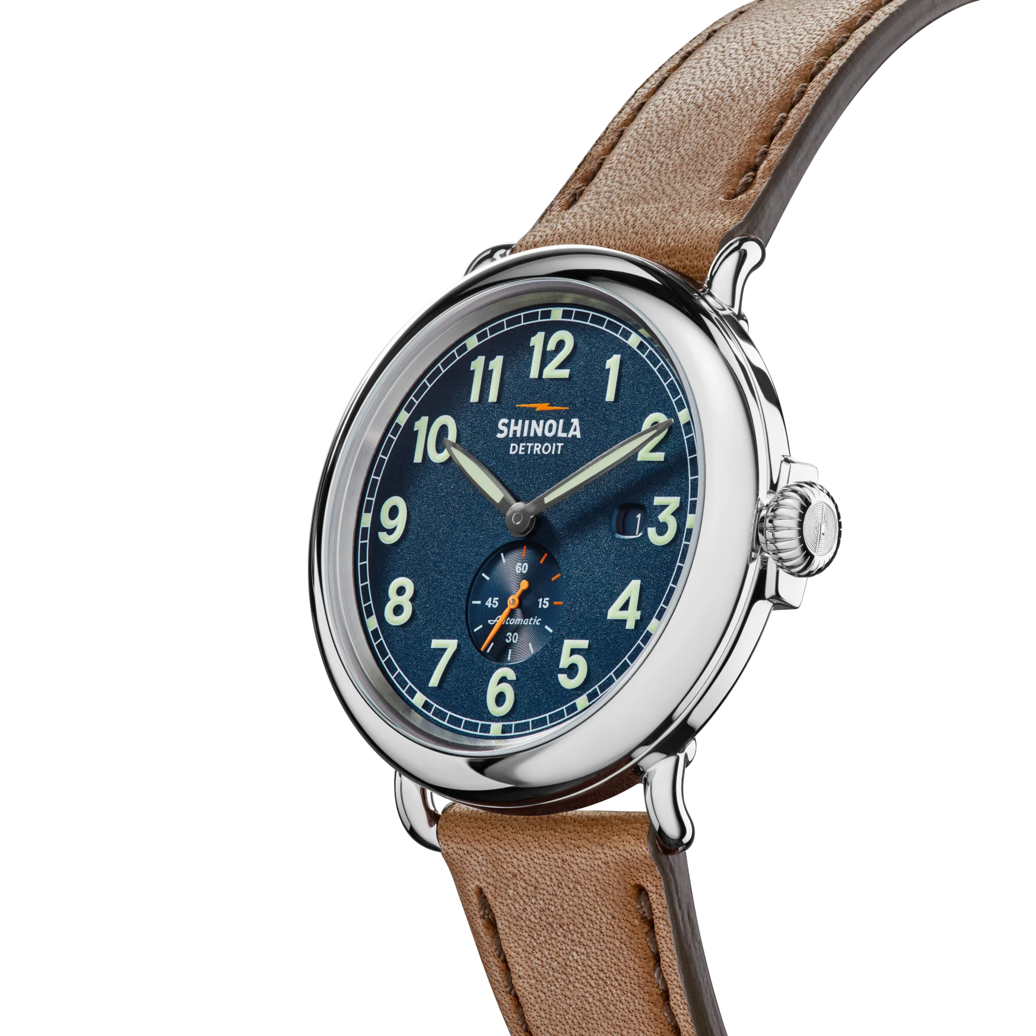 This 45mm automatic watch speaks to a rich history of timekeeping and quality craftsmanship in more ways than one—it’s a love letter to the evolution of Runwell. It’s our first automatic timepiece equipped with the iconic Runwell sub-second feature. From its new colorways to open caseback, and dial illuminated by C3 lum, every detail is a tribute to where we’ve been and where we’re going.